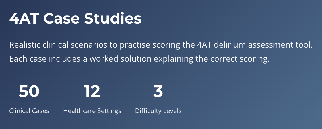 Evidence-based bedside tool for rapid delirium screening across acute, community, and peri-operative settings.